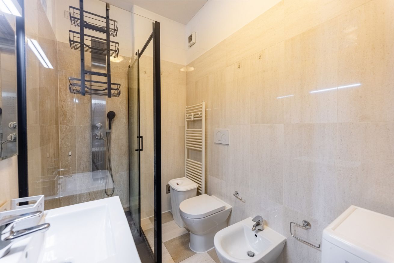 • Un bagno moderno con doccia ampia, appena ristrutturato, pensato per offrire comfort e praticità