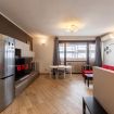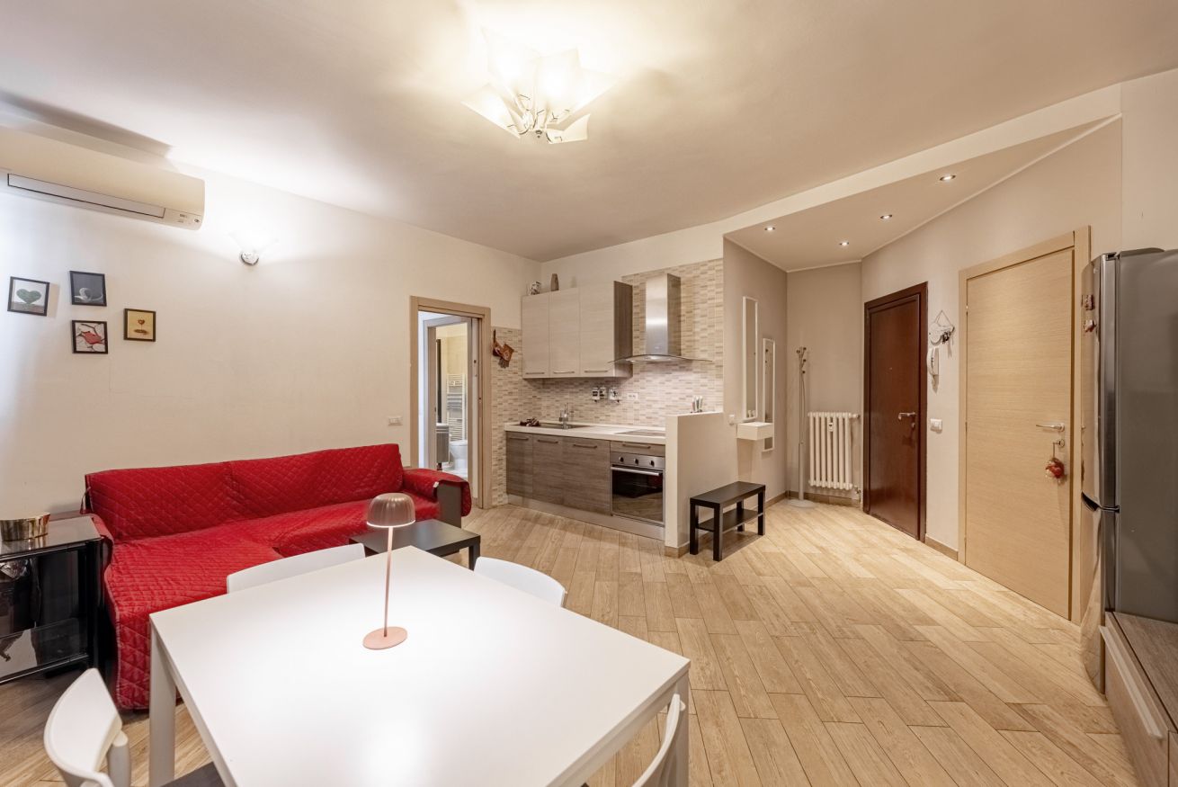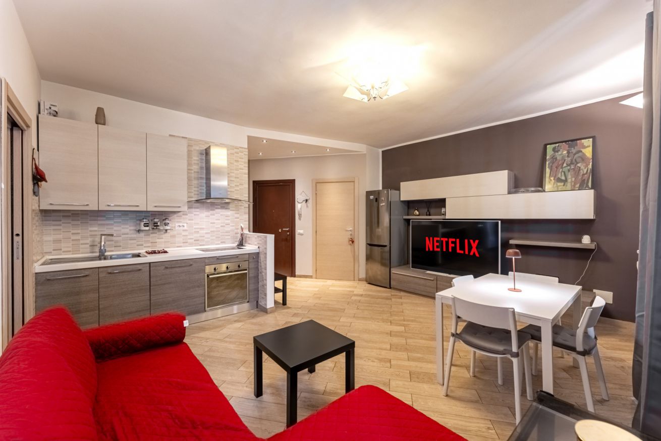 • Un soggiorno con cucina a vista, completamente attrezzata, e un divano letto molto comodo per ospitare fino a 4 persone in totale