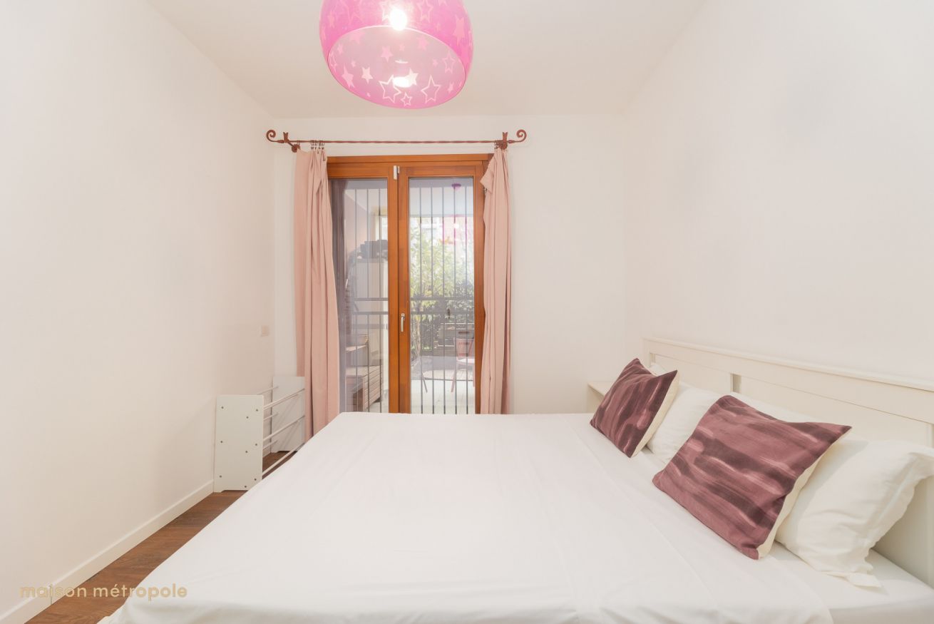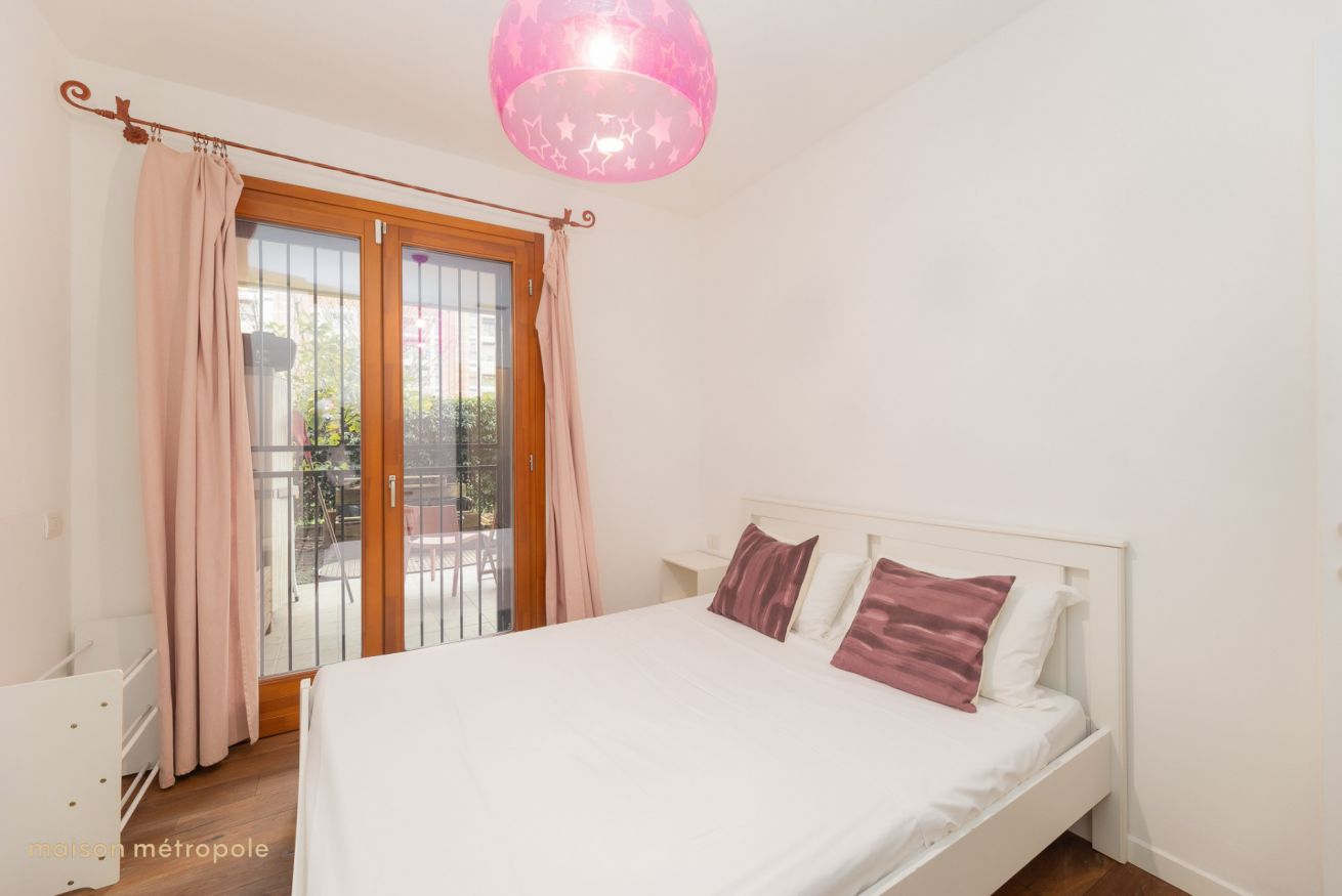 La seconda camera con letto matrimoniale, con armadio e accesso diretto al secondo giardino.