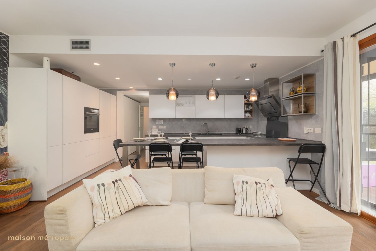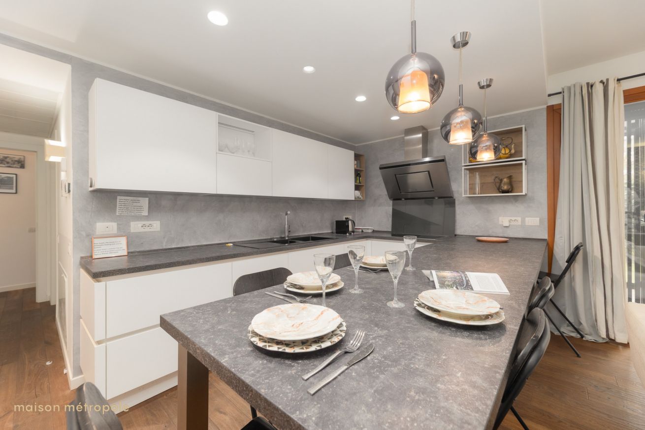 L’ampio soggiorno vi accoglie con un comodo divano, smart tv e wi-fi veloce, una cucina completamente attrezzata include tutto il necessario per preparare i vostri piatti preferiti: piano cottura, forno, frigorifero, macchina del caffè, stoviglie e utensili.