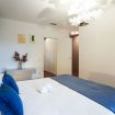 La prima camera matrimoniale bagno en suite, offre privacy e confort. E' composta da letto matrimoniale, armadi e una accesso diretto al giardino che dona luce naturale all’ambiente.