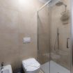 Il bagno è moderno e funzionale, con lavabo, WC, bidet e doccia. Troverai asciugamani freschi e un welcome kit con bagnoschiuma e shampoo.