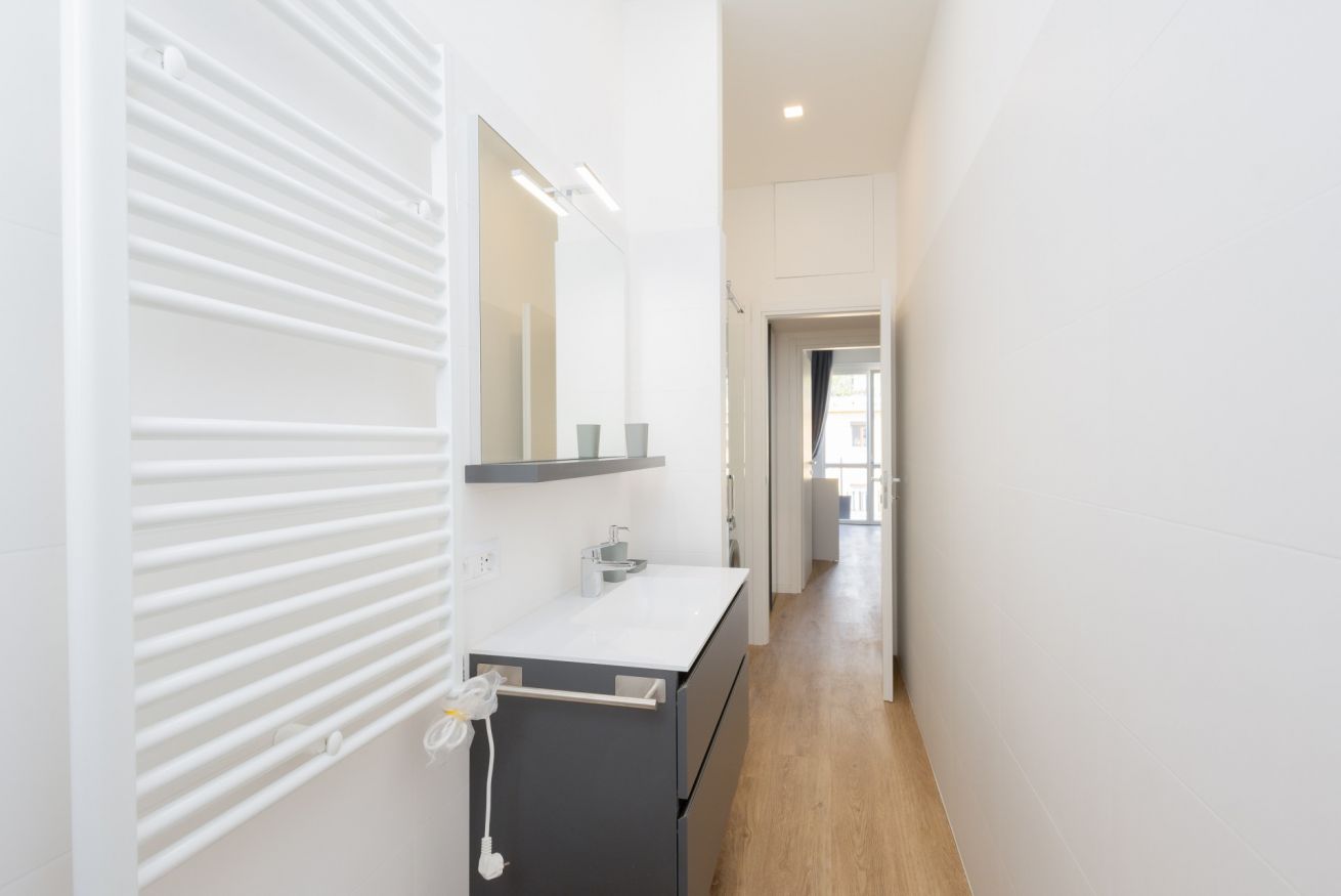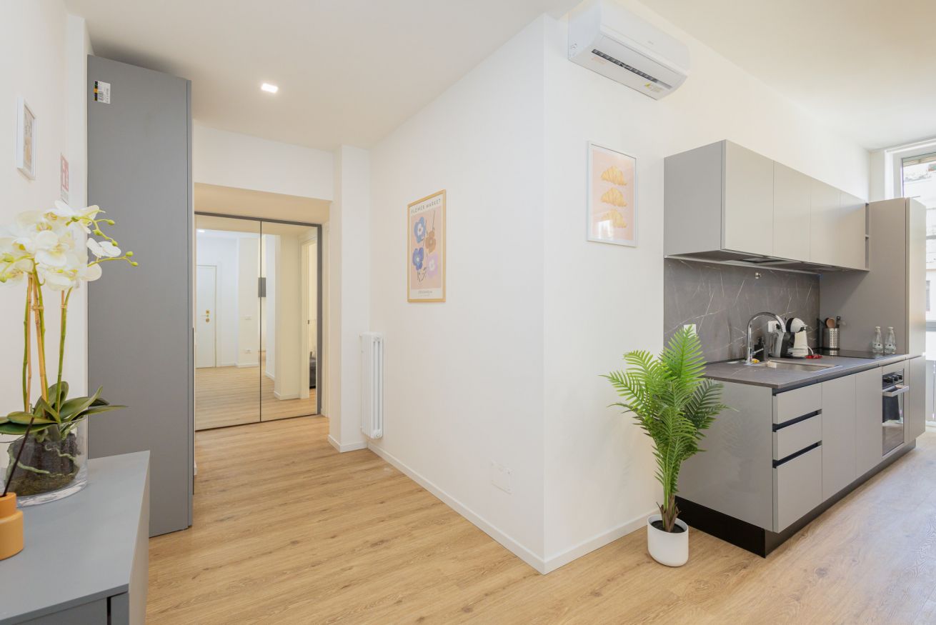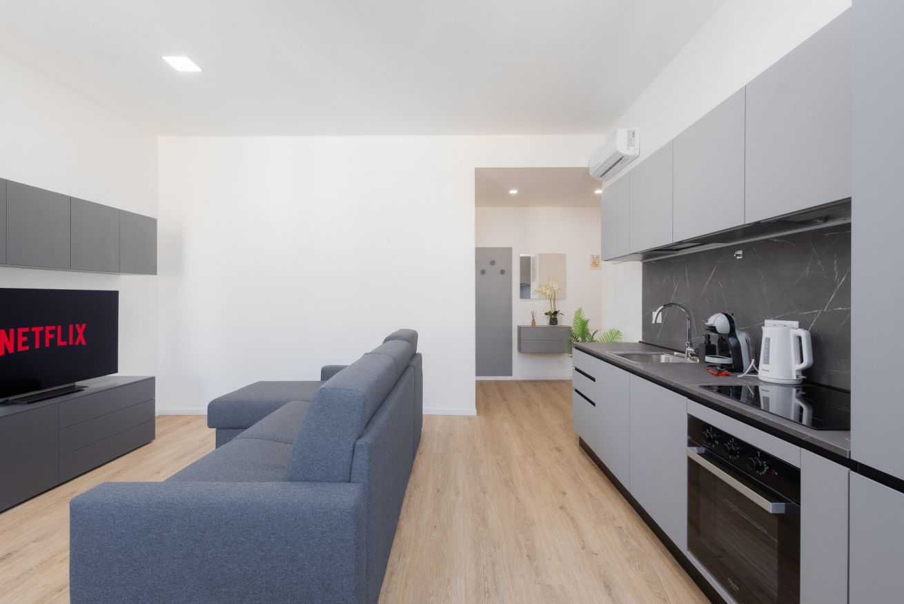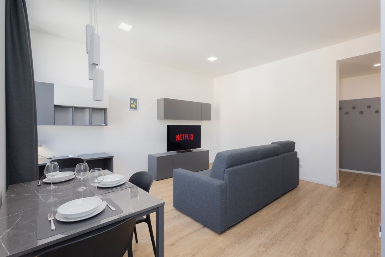 Questo bilocale di 70 mq, luminoso e finemente arredato, ti sorprenderà con il suo design moderno e minimal, pensato per garantire il massimo comfort e per viaggiatori smart worker.