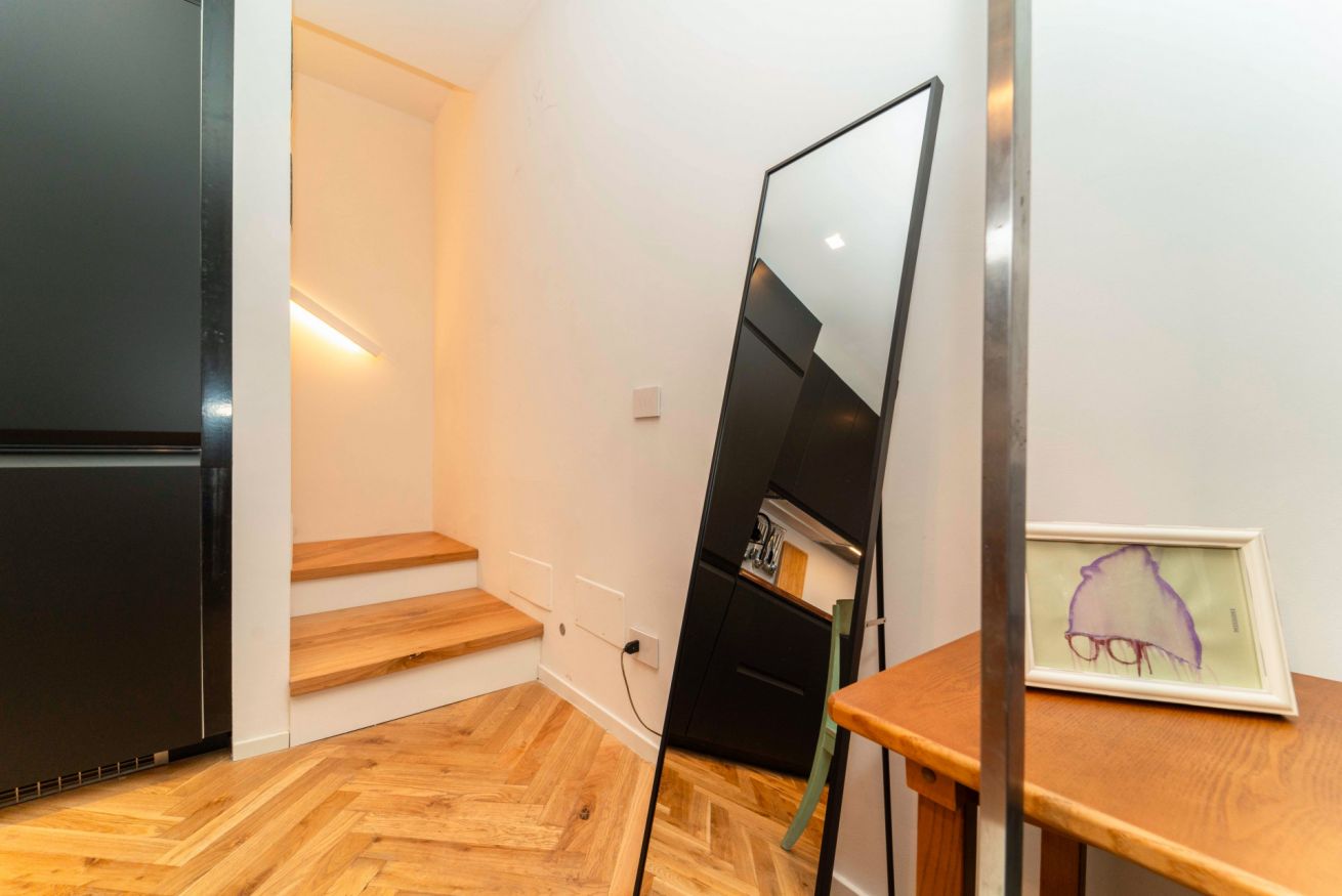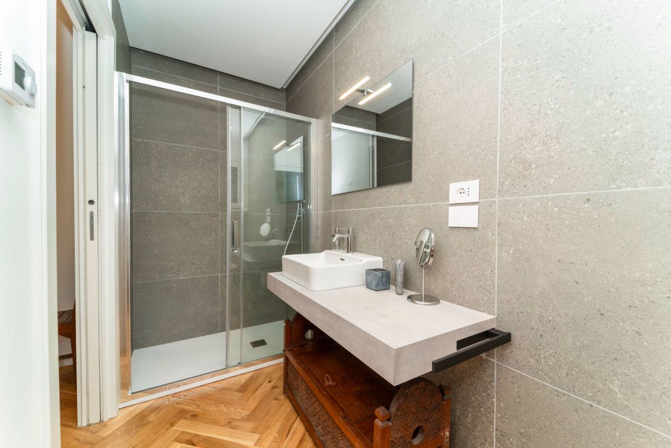 Questo esclusivo bilocale di 85 mq si sviluppa su tre livelli, regalando un tocco di design e originalità in ogni ambiente.