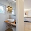 Un pratico disimpegno ospita una lavatrice e un’asciugatrice, rendendo l’appartamento ideale anche per soggiorni più lunghi, senza rinunciare alla comodità.