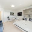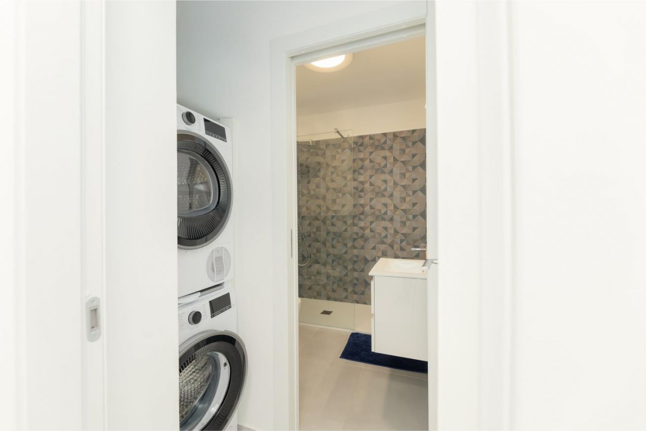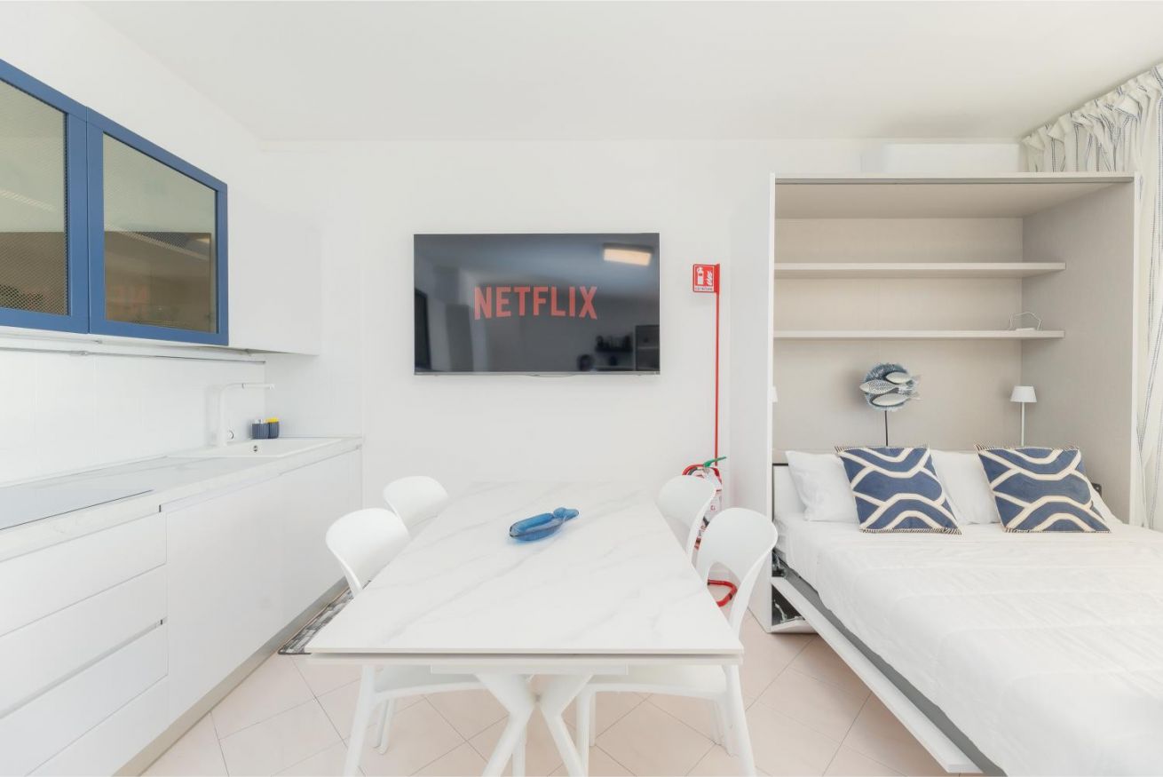 L’appartamento si compone di un ampio soggiorno con divano, zona pranzo, letto a muro richiudibile e TV a schermo piatto, una cucina attrezzata con forno, lavastoviglie, bollitore e macchina del caffè . La camera da letto matrimoniale è luminosa e dotata di spazio per riporre i propri effetti personali. Il bagno moderno dispone di doccia spaziosa, bidet e finiture contemporanee.