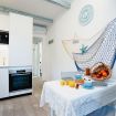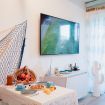 Arredato con gusto in stile marino, l'appartamento al piano terra vanta un luminoso ingresso living con cucina a vista completa di forno, forno a microonde, lavastoviglie e piano ad induzione. Il divano con 2 posti letto aggiuntivi e la camera con letto matrimoniale assicurano comfort e privacy per tutti gli ospiti.