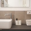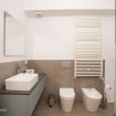 Il grande bagno moderno è stato progettato con un design elegante e funzionale, completo di doccia, WC, bidet e un kit shampoo & bagnoschiuma per coccolarvi ogni giorno.