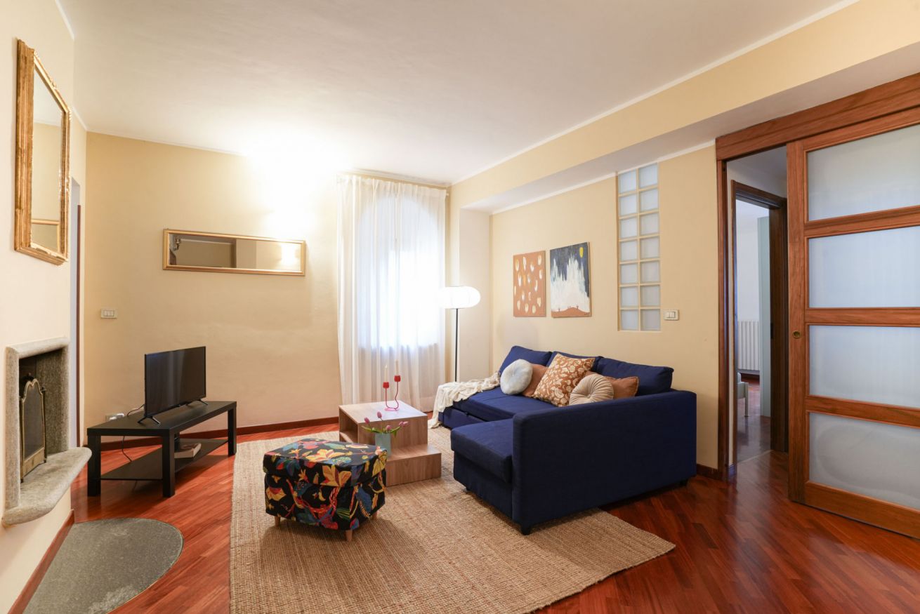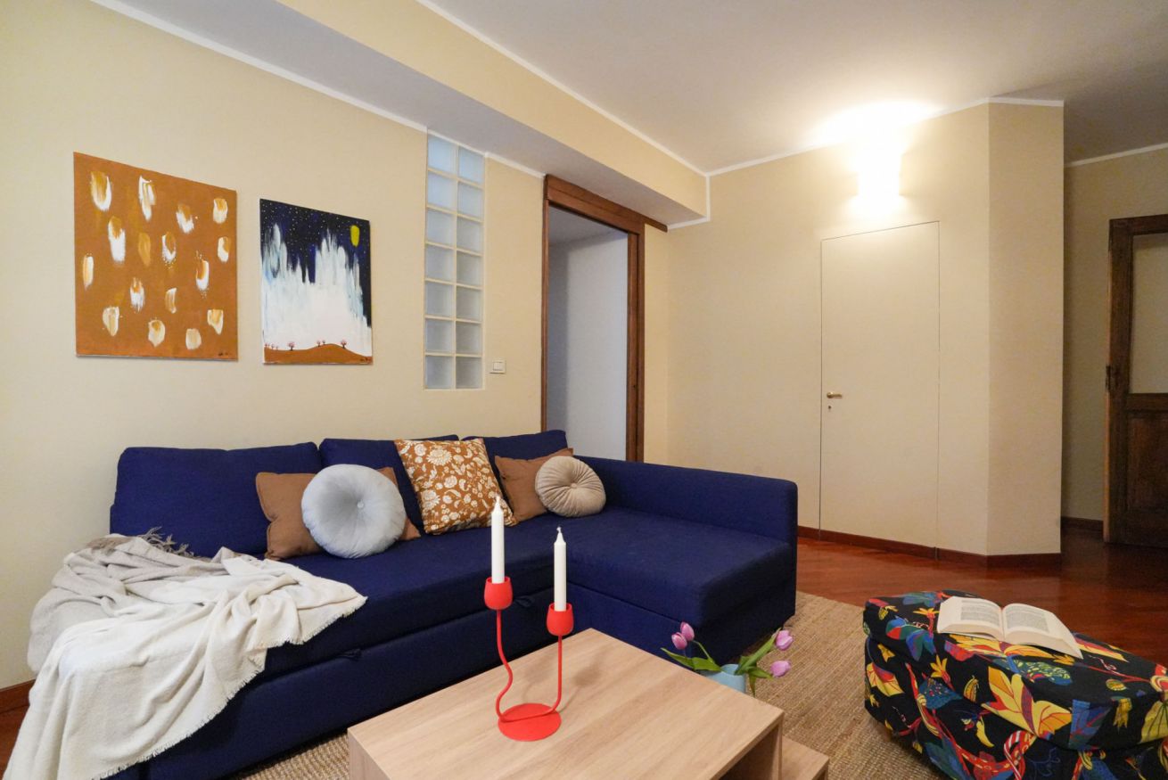 Il soggiorno è un ambiente accogliente e curato nei dettagli, pensato per momenti di relax e convivialità: è arredato con TV a schermo piatto, connessione Wi-Fi ad alta velocità e un camino perfetto per scaldare le serate torinesi più fresche.