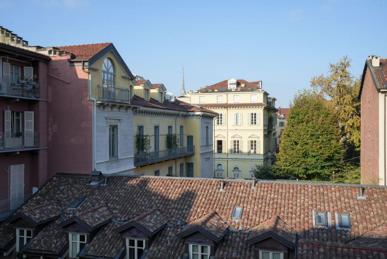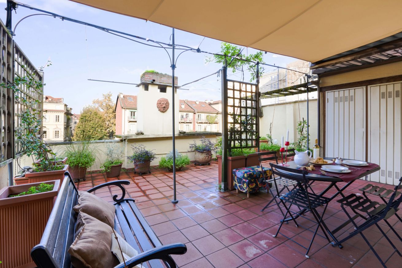 Il fiore all’occhiello della proprietà è la splendida terrazza panoramica di 50 mq, ricca di piante rampicanti e vegetazione rigogliosa. Un vero angolo verde in città, dove poter godere della straordinaria vista sulla Mole Antonelliana, sul fiume Po e sui tetti del centro storico. Uno spazio perfetto per colazioni all’aperto, aperitivi al tramonto o cene sotto le stelle.