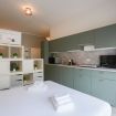 Benvenuti in questo piccolo monolocale open space arredato in stile contemporaneo, ideale per soggiorni brevi a Torino.