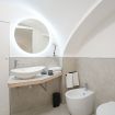 Il bagno in camera è moderno e funzionale, completo di doccia, wc e bidet.