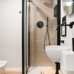 Completano l’alloggio una raffinata stanza da bagno con doccia, wc e bidet, curata in ogni dettaglio per un tocco di lusso.