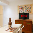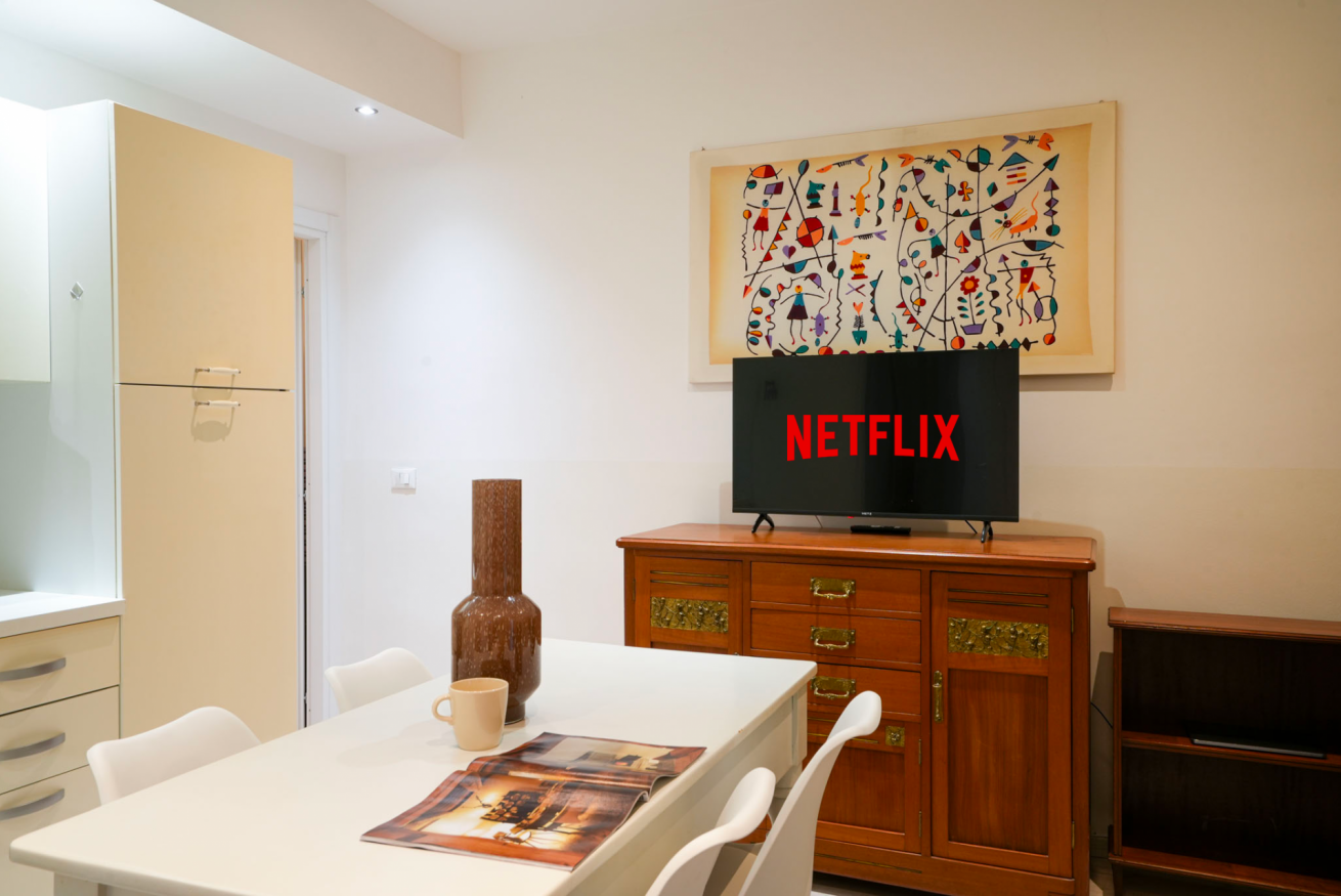 Il tavolo da pranzo con smart tv, regalano un’atmosfera rilassante durante ogni momento della giornata.