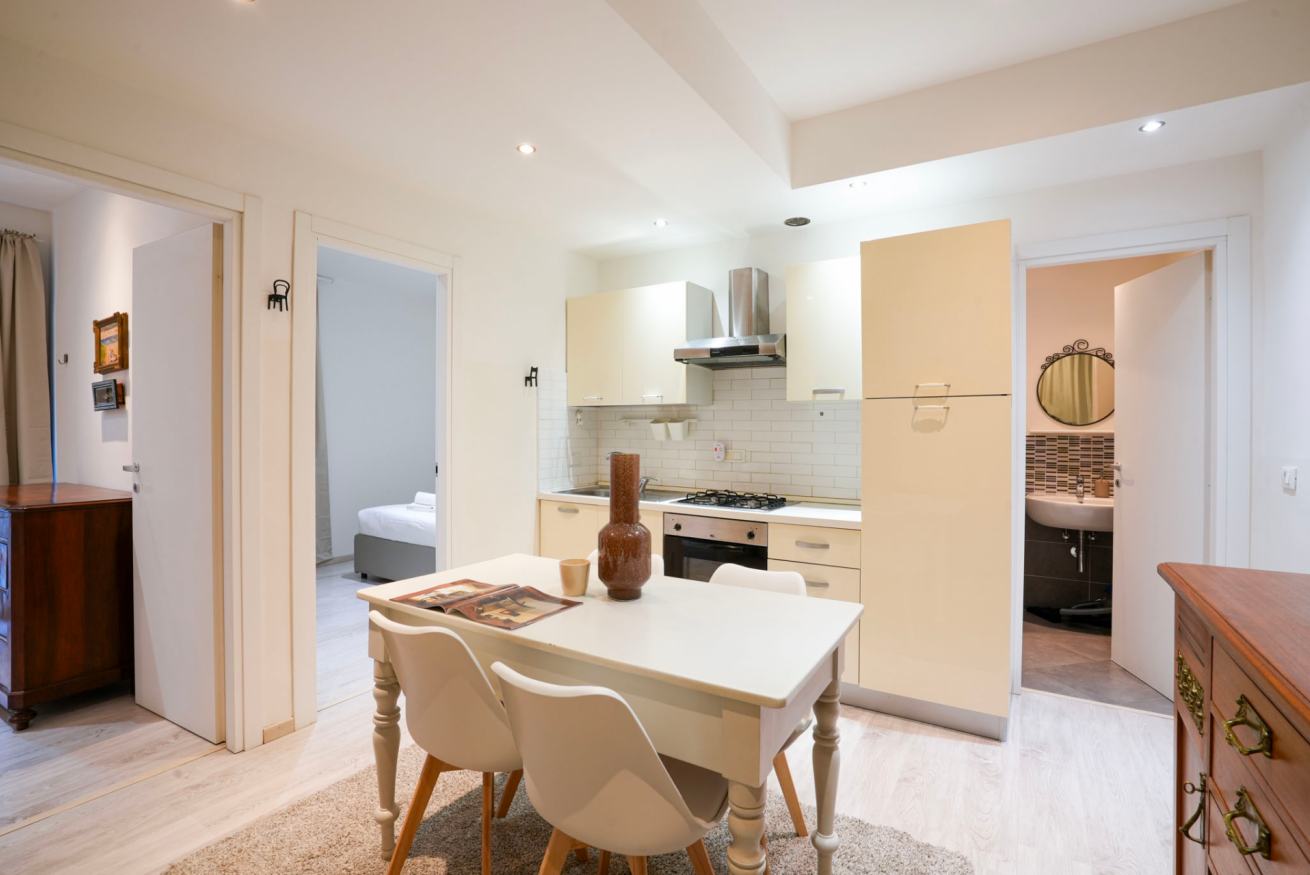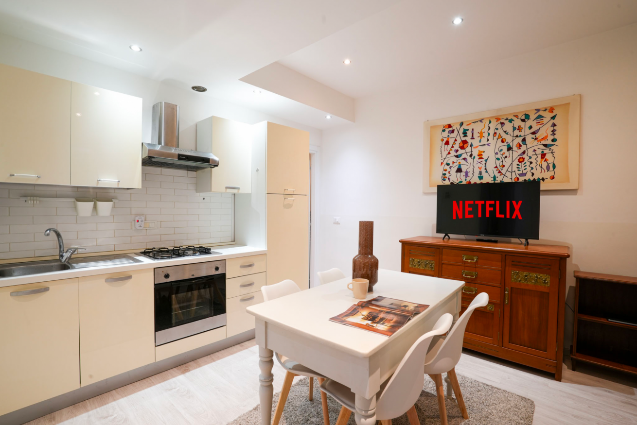 Questo appartamento, recentemente ristrutturato, ti accoglierà con la zona giorno con una cucina completamente attrezzata con elettrodomestici e utensili per cucinare.