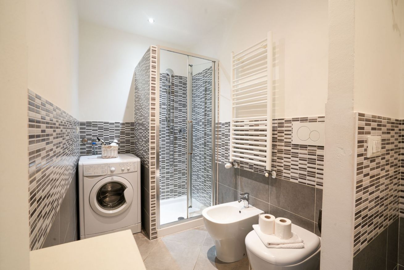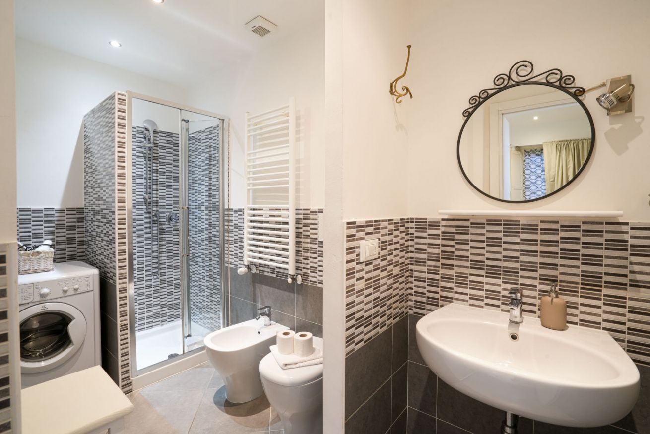 Il bagno è completo con doccia, WC, bidet, Kit cortesia con shampoo & bagnoschiuma, asciugamani.