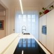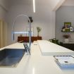 Al centro della casa si apre una splendida cucina a isola total white, cuore pulsante dell’appartamento e spazio dedicato alla convivialità e alla sperimentazione culinaria. Qui cucinare diventa un gesto di stile.