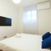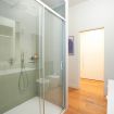La zona notte è composta da due camere matrimoniali, arredate con linee minimali e un ampio armadio nel corridoio.