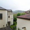 Dopo il comodo divano angolare, al centro, un ampio tavolo in legno ci conduce fino alla cucina. Le vetrate che percorrono tutta la zona giorno hanno un affaccio su un interno cortile molto curato e un bellissimo scorcio sulla collina.