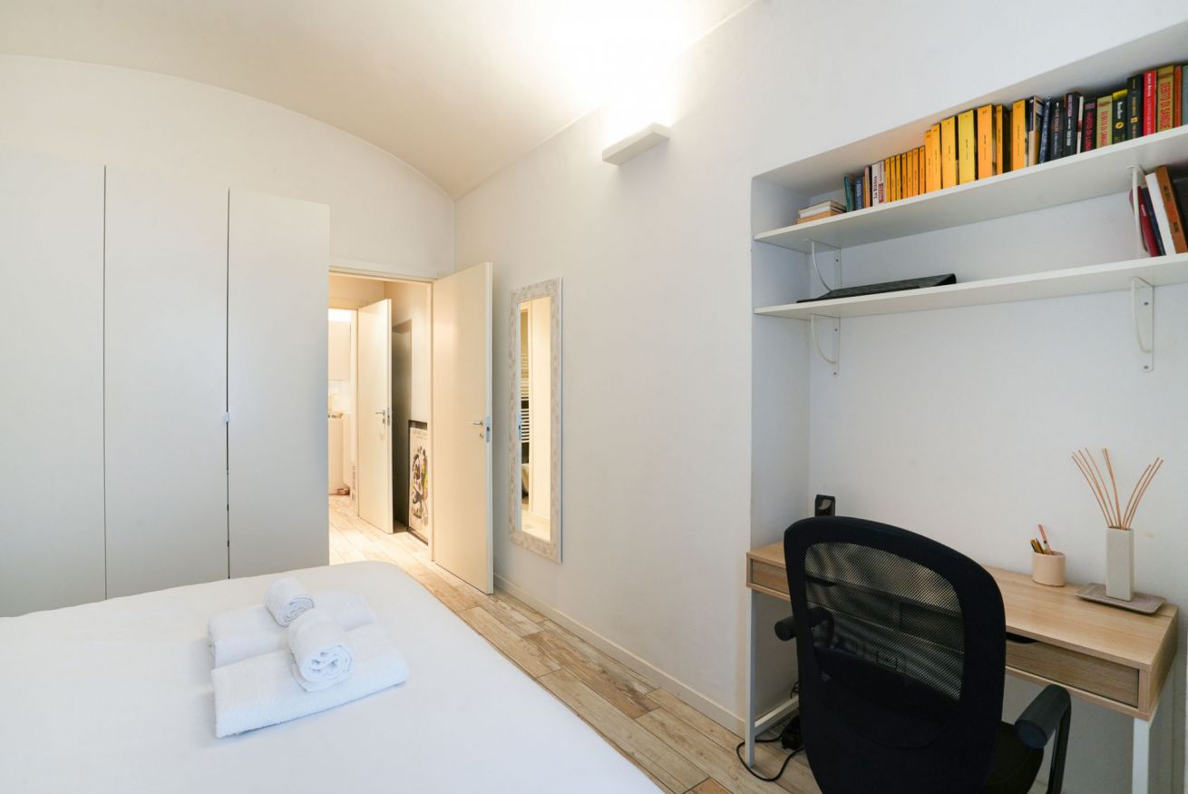 La camera da letto dispone di un comodo letto matrimoniale, una scrivania utile anche per chi viaggia per lavoro e un ampio armadio per organizzare al meglio i propri effetti personali.