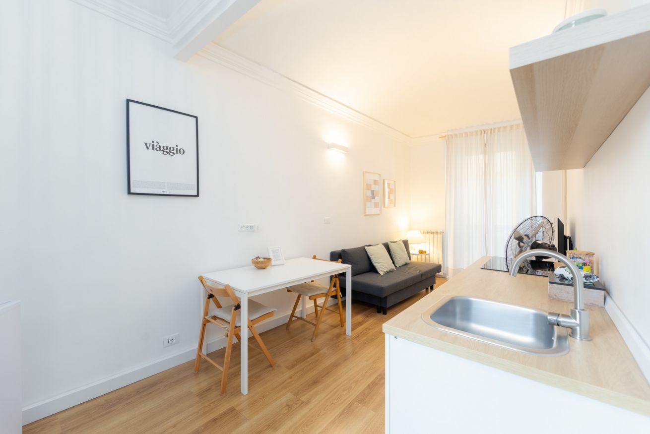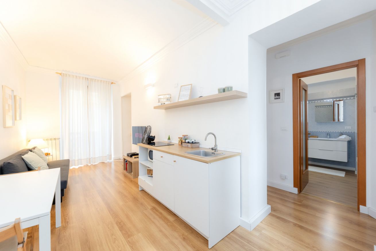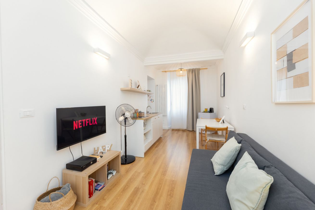 La zona living è composta da soggiorno confortevole con divano letto e smart tv, l’atmosfera perfetta per rilassarti dopo una giornata in giro per la città.