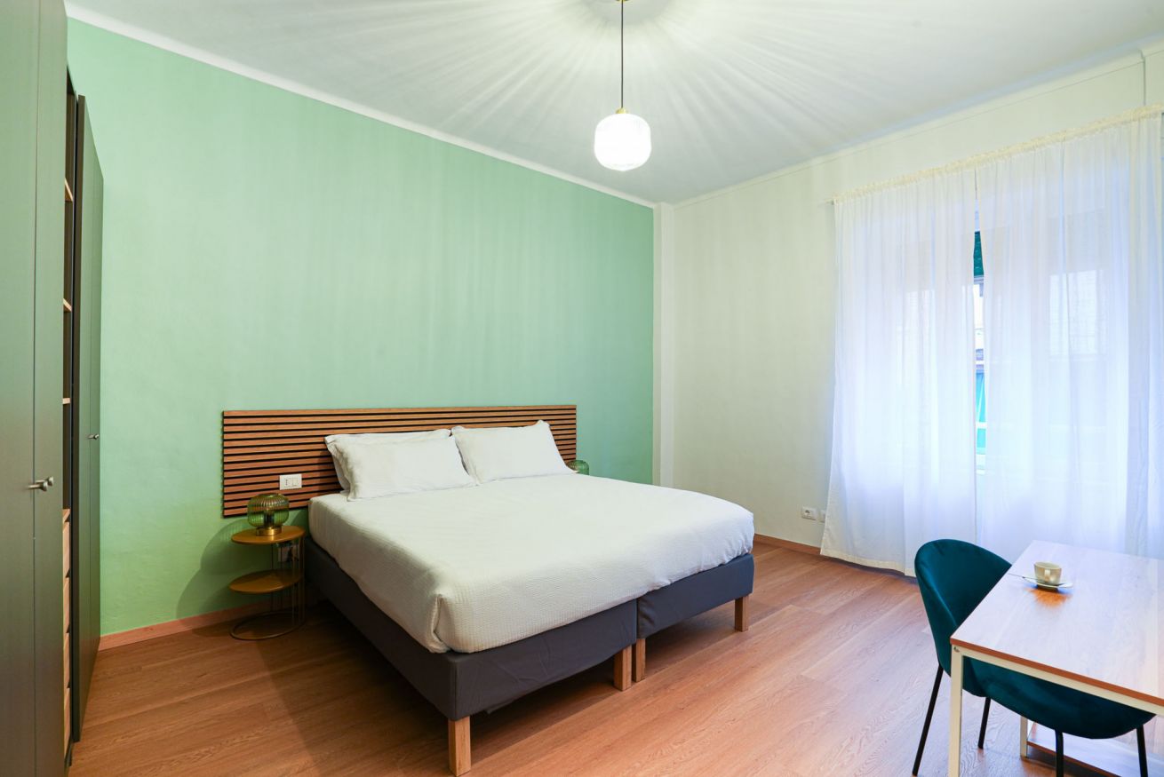 La camera da letto è dotata di un letto matrimoniale, ampi armadi e scrivania, per un riposo piacevole e rigenerante.